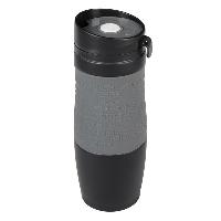 Термочашка з нержавіючої сталі. Зберігає температуру напою. Має знімну пластикову кришку з гачком для підвішування і гумове дно. Завдяки силіконовій накладці чашка не вислизає з рук.Об'єм:380 мл.