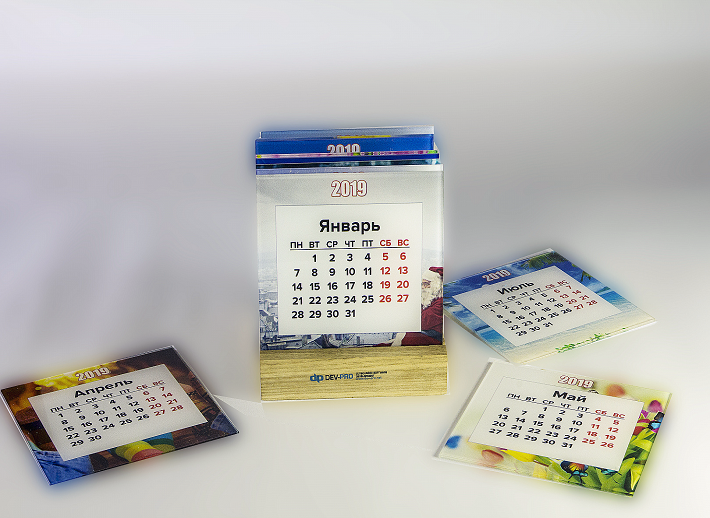 Металлический перекидной календарь с печатью — наш фаворит. Календарь из металла с логотипом фирмы не занимает много места, помещается в евроконверт и может служить вечно. На следующий год можно заказать просто сетку для металлического календаря из стикеров.